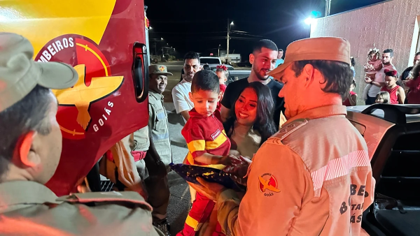 O Corpo de Bombeiros Militar de Goiás (CBMGO) realizou o sonho do pequeno Théo no aniversário dele de 3 anos, no sábado (19), em Goianésia. Na ocasião, os militares foram até a festa do garoto, que é fã do CBMGO. Ele havia pedido aos pais a presença dos “heróis de farda” na celebração que teve como tema a corporação