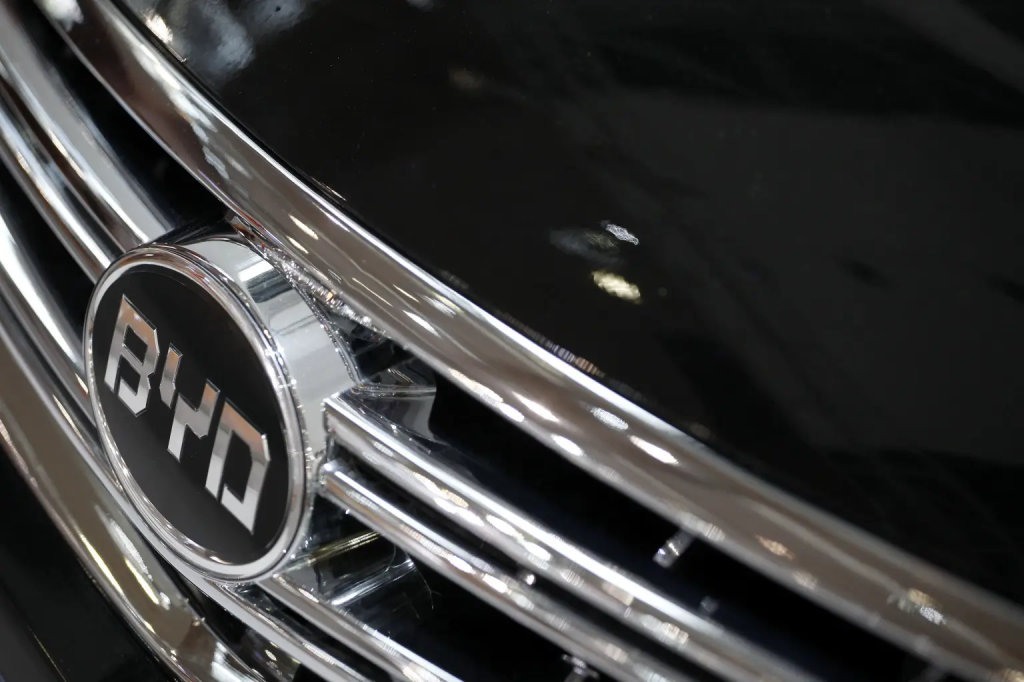 Logo da BYD em carro na Guangzhou Autoshow (Foto: Reuters)