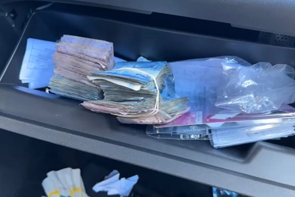 Em um dos dois veículos usados por Roberta Kikuti Narduchi Lara, de 43 anos, e Erimar José da Paz Costa, 42, os agentes encontraram R$ 600 mil, grosseiramente falsificados, além de uma pistola calibre 9 milímetros.