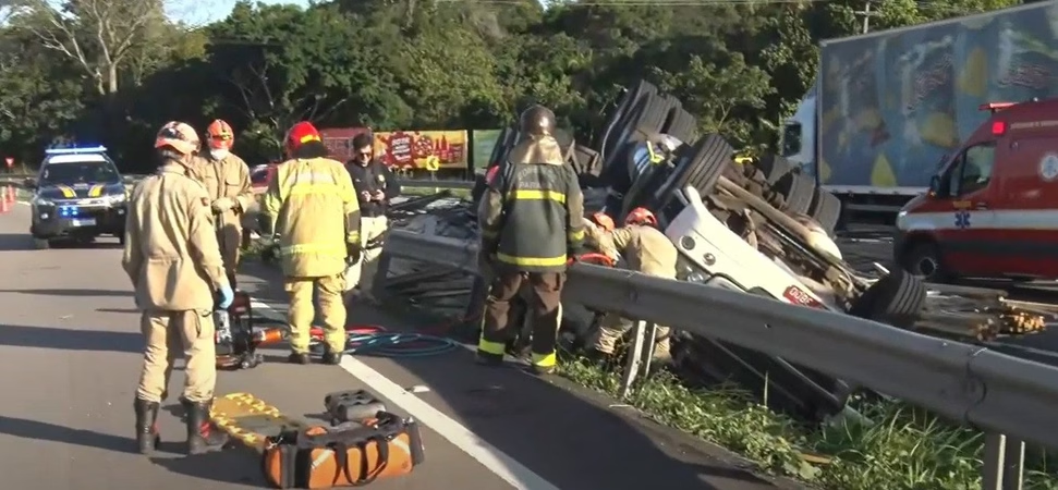 Ainda não há detalhes sobre o estado de saúde da vítima nem sobre as causas do acidente. As equipes precisam utilizar equipamentos especiais para desencarceramento, ou seja, cortar as ferragens e socorrer a vítima. Equipes do Samu também estão no local para levar o motorista ao hospital.