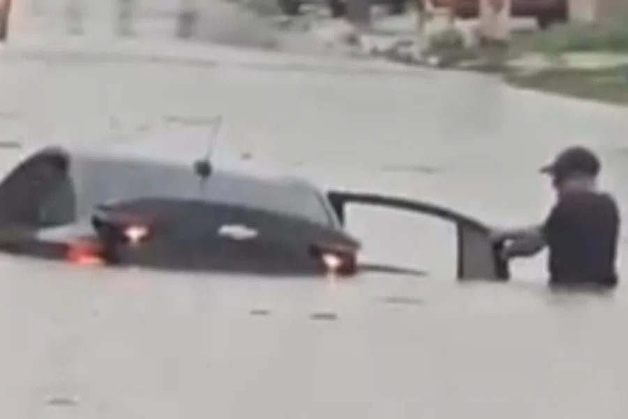 No vídeo publicado pela página @CeilandiaMuitaTreta, é possível ver a água cobrindo boa parte do veículo e do motorista, que aparece apenas da cintura pra cima. O registro foi feito próximo à estação guariroba, em Ceilândia (DF).