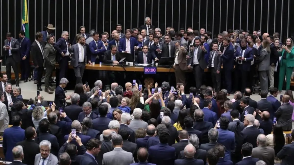 A Mesa Diretora da Câmara dos Deputados enviou as representações de afastamento por até seis meses dos congressistas na sexta-feira (8). Esta medida ocorre após, na noite quarta-feira, os deputados se recusarem a deixar a cadeira do presidente Hugo Motta durante o motim, apesar da retomada da sessão.