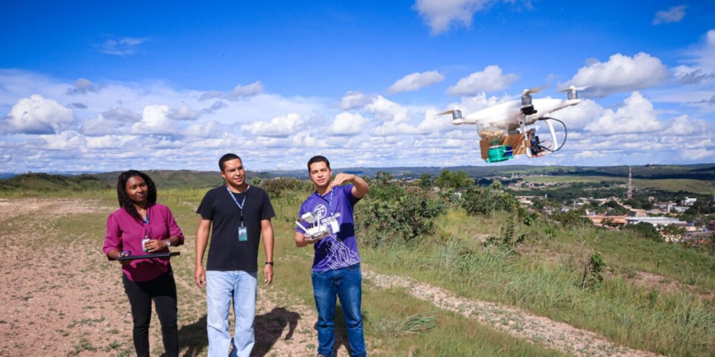 A Escola do Futuro de Goiás (EFG) Sarah Luiza Lemos Kubitschek de Oliveira, em Santo Antônio do Descoberto, no Entorno do Distrito Federal, desenvolveu um dispositivo de baixo custo que transforma drones em dispersores de sementes para ajudar no reflorestamento, por exemplo, de áreas atingidas por incêndios florestais.