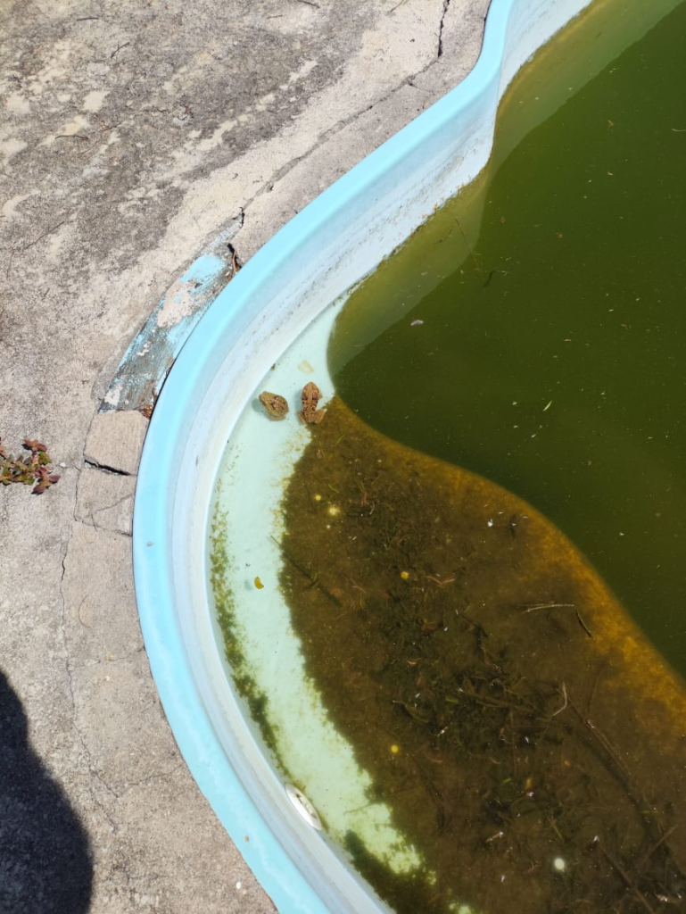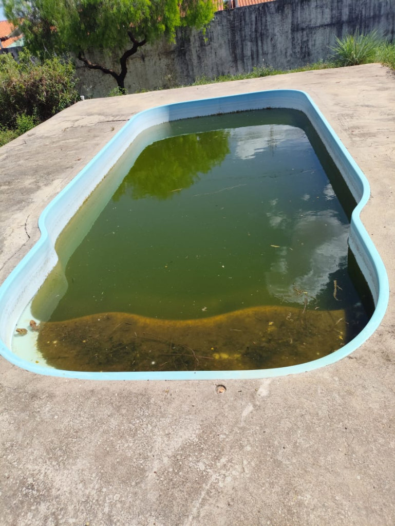 Segundo relato de populares, a situação das piscinas das escolas continua preocupante, já que estão a meses sem manutenção ou limpeza. O local, virou morada de sapos e a situação só não está mais preocupante, pois a diretora de uma das escolas tem arcado com os custos para a compra de cloro e assim evitar focos de lavas do mosquito da dengue, até que a administração pública providencie a limpeza. Veja as imagens: