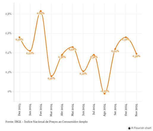 O temor do governo perdura porque o Índice Nacional de Preços ao Consumidor Amplo (IPCA), considerado a inflação oficial do país, está em 4,29% no acumulado do ano (ou seja, no período de janeiro a novembro).