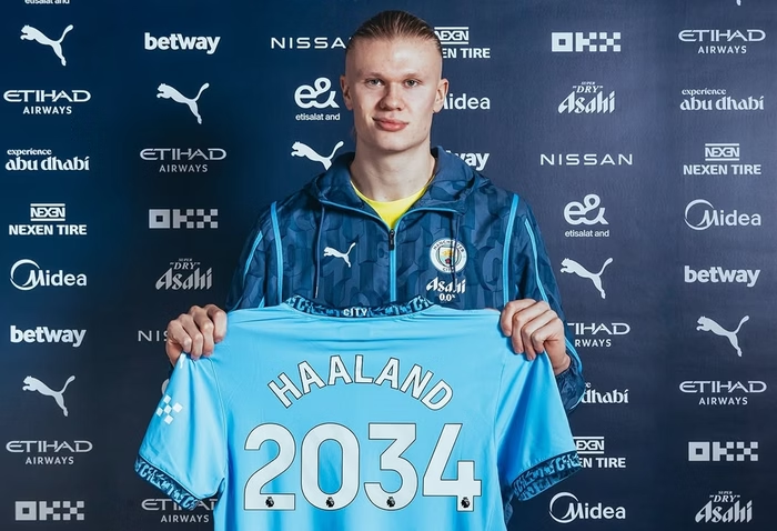 Um dos jogadores mais badalados do futebol atual, Erling Haaland renovou com o Manchester City por tempo incomum. A extensão do centroavante com os Citizens tem validade até julho de 2034, quando o norueguês terá 34 anos de idade.