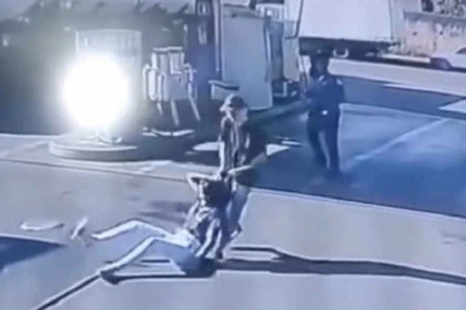 Frentista é arrastada pelos cabelos por ex em posto de Uberlândia – (crédito: Reprodução/Redes sociais)