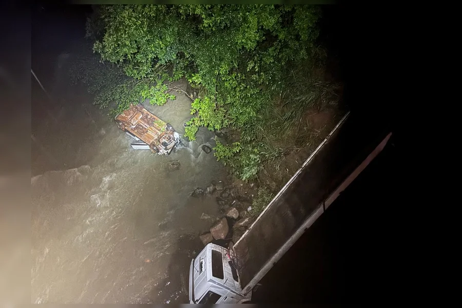 Um guincho que transportava um veículo com quatro pessoas caiu de uma ponte no km 113 da BR-364, em Cachoeira Alta (GO), após ser atingido por um carro, no domingo (8/2). Uma mulher de 60 anos morreu e outras seis pessoas ficaram feridas