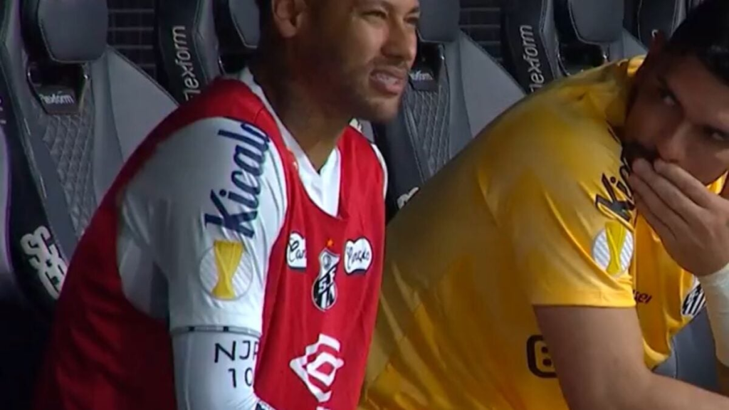 Em uma delas, no segundo tempo, Neymar ensaiou deixar o banco e ir fazer alguns movimentos ao lado do gramado, mas o trote durou apenas alguns passos. Logo, o camisa 10 voltou ao posto. Veja o vídeo abaixo: