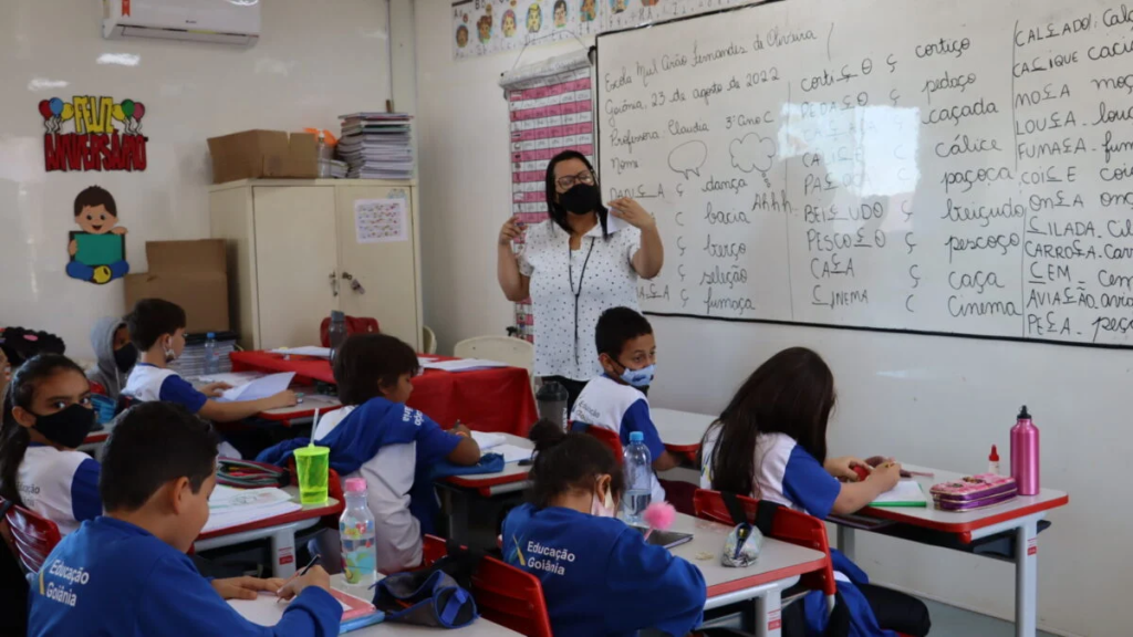 Professora em sala de aula em Goiânia (Foto: divulgação/Prefeitura de Goiânia)
