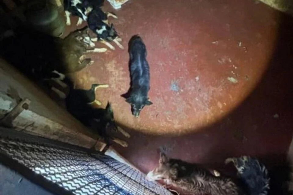 Os cães das raças Border Collie e Burriler eram mantidos em um cativeiro insalubre. Eles não recebiam alimentação e água.