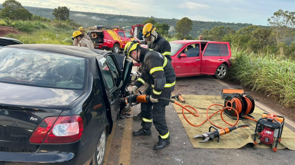 Entre os feridos, um passageiro precisou ser retirado do veículo pelos bombeiros (Divulgação CBMGO)